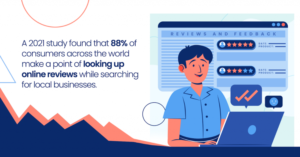 A 2021 study found that 88% of consumers across the world make a point of looking up online reviews while searching for local businesses. And that’s not all!