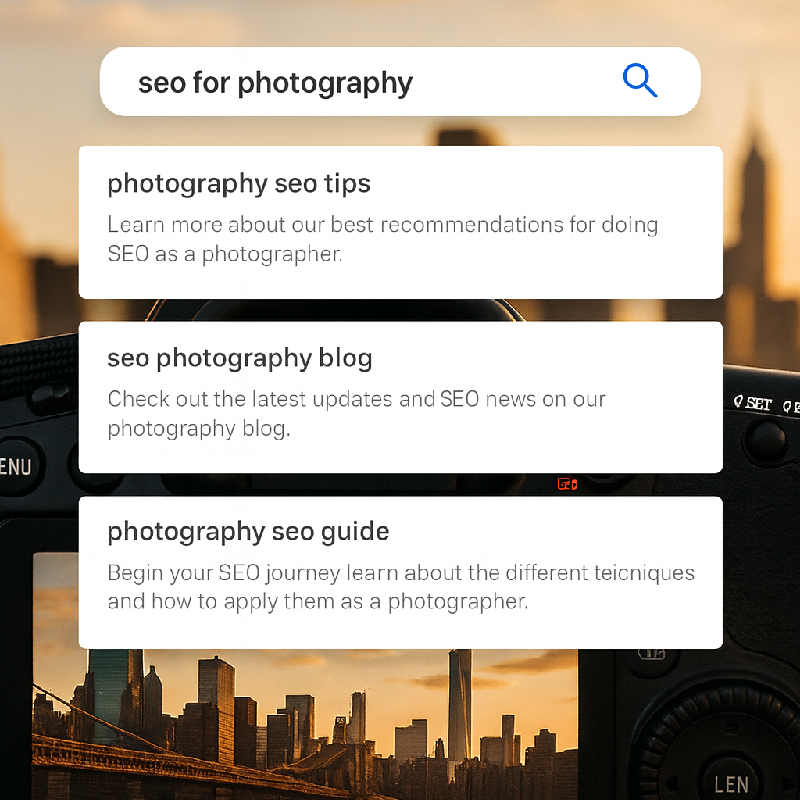 We optimize for how clients actually search for photographers—by style, niche, and location (wedding, portrait, brand, studio, etc.)—so your portfolio pages and galleries show up for the right keywords, not just generic “photography services.”