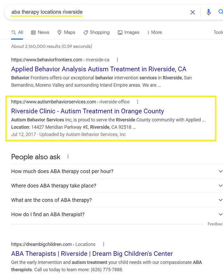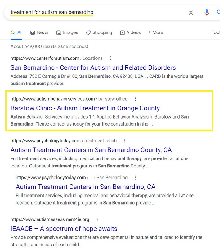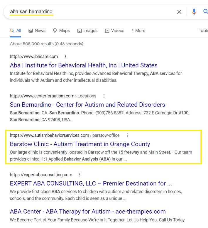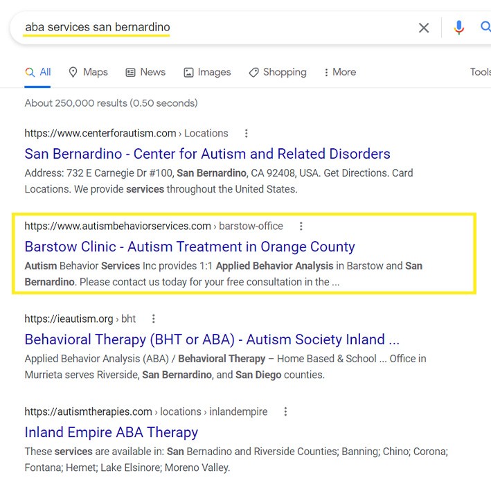 Any area of the healthcare field is full of quality options. The challenge with ABSI was to get them the attention they deserve in this crowded market. We wanted to build them an SEO plan that would draw search engines to them. This provider is unique in that their message needs to be conveyed in a way that never marginalizes people with autism.