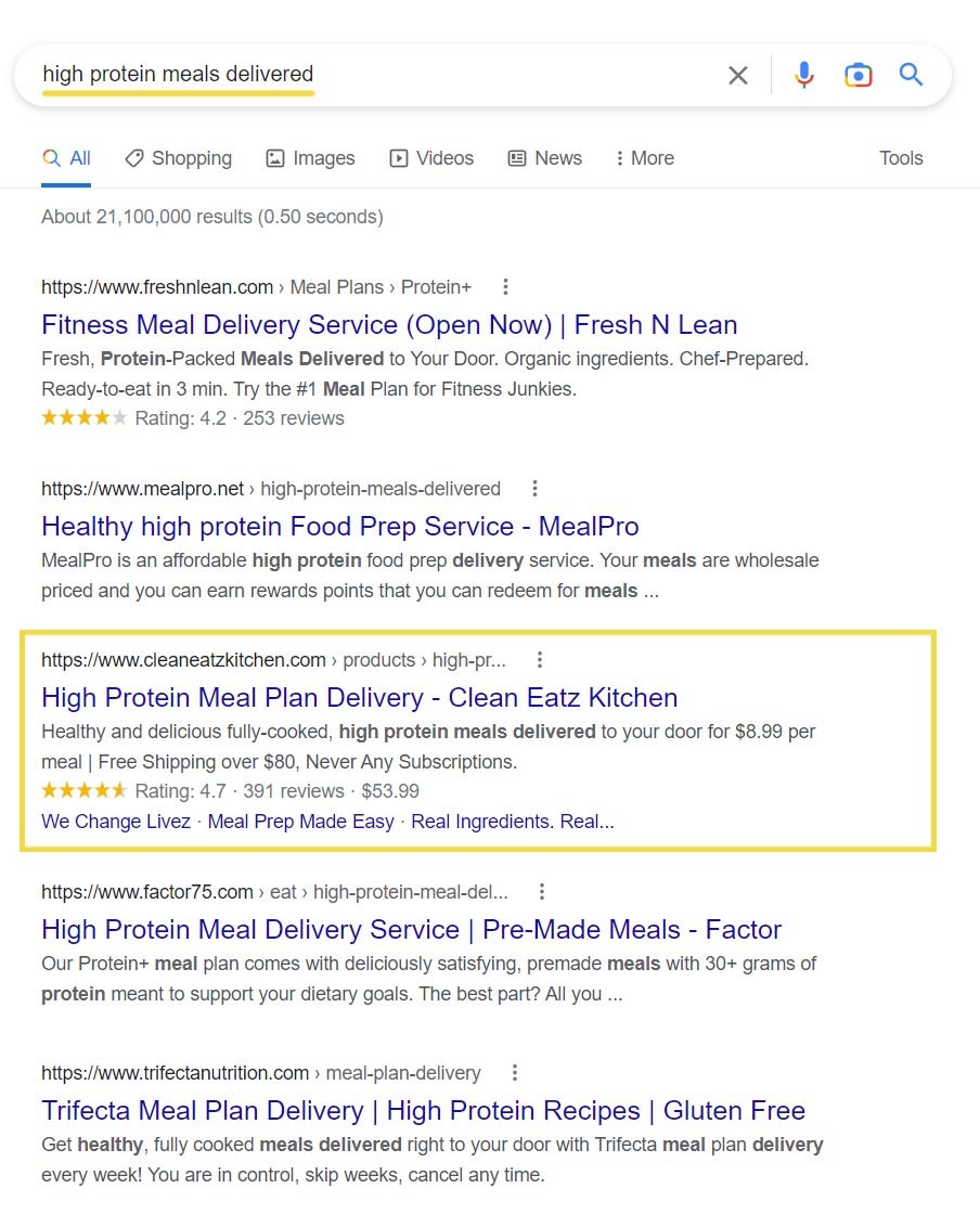 Meal prep delivery has exploded in popularity over the past few years, and the competition online has gotten fierce. Since most people begin their search for services online, including healthy meal prep delivery, the most effective way to generate new customers is to outrank the competition in the SERPs and appear at the top of the search results for specific queries.
