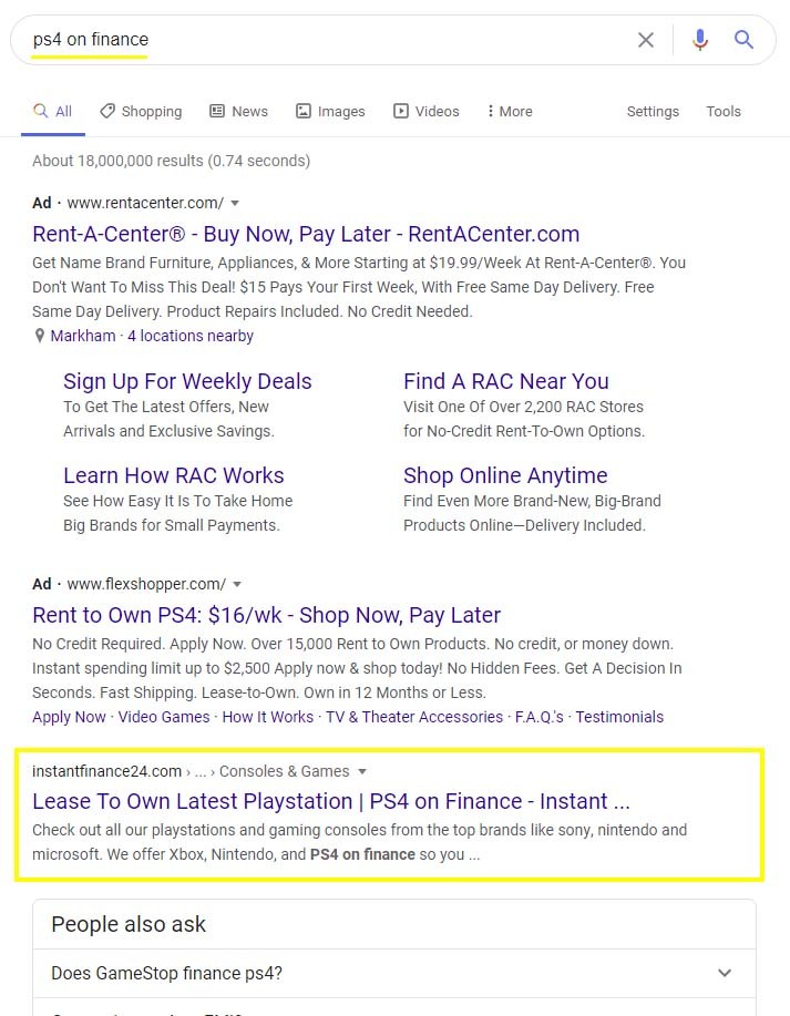 Target Keyword: ps4 on finance