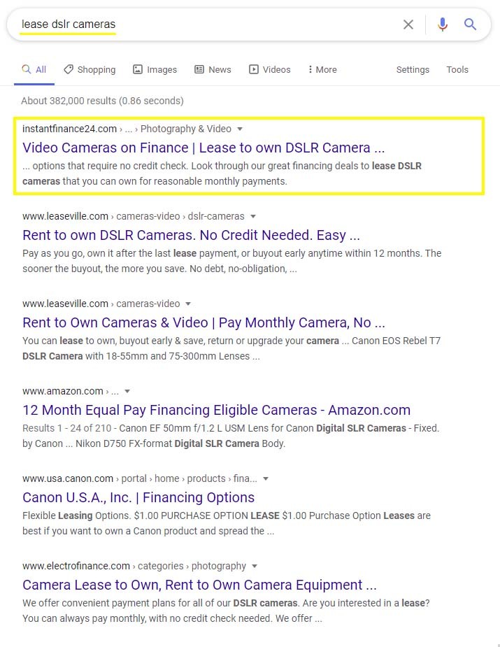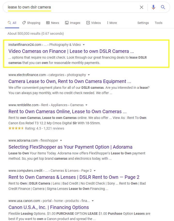 Target Keyword: lease to own dslr camera