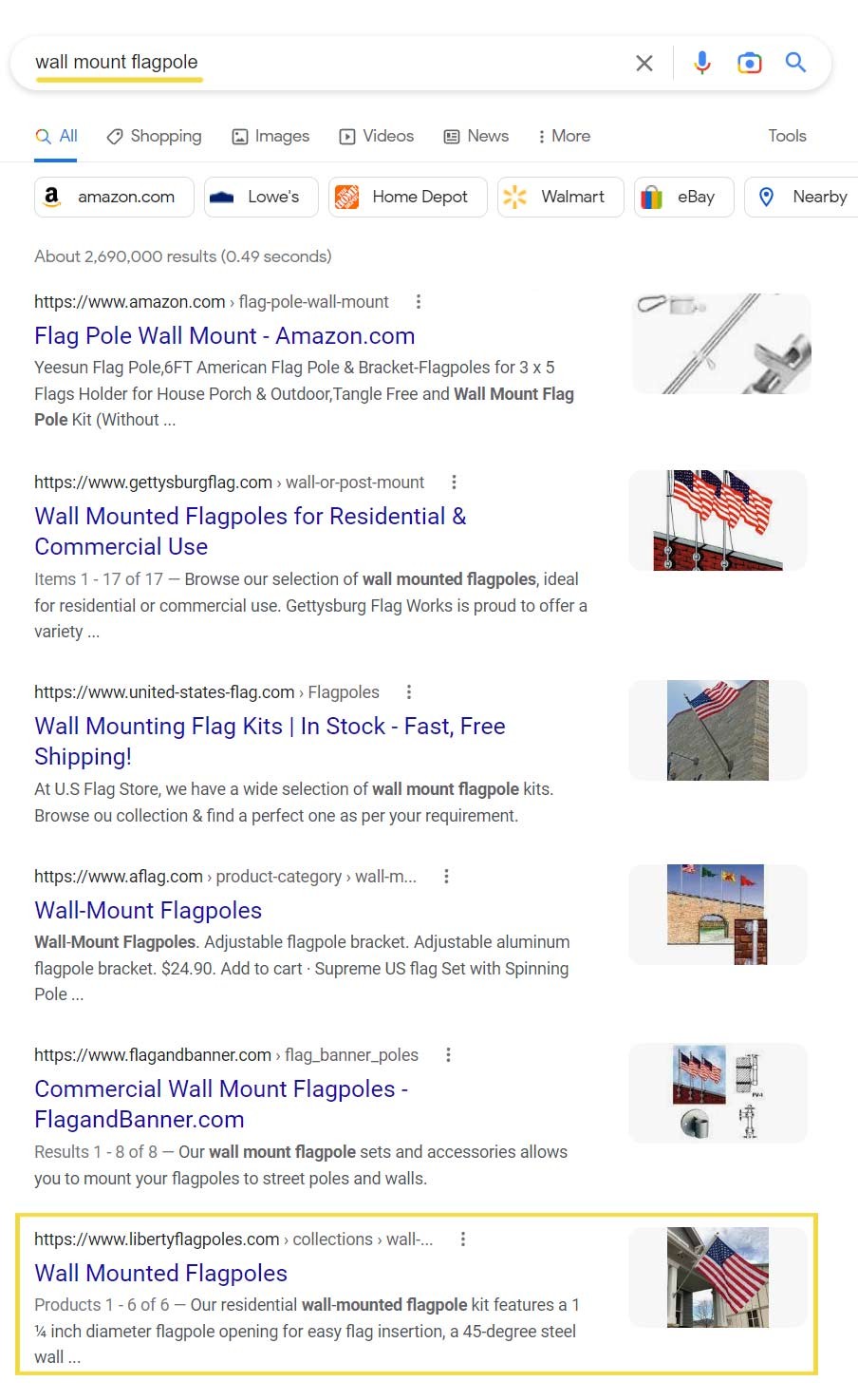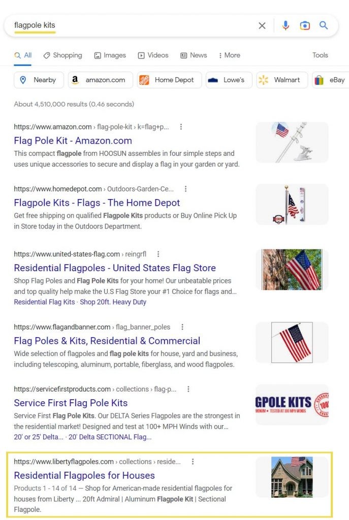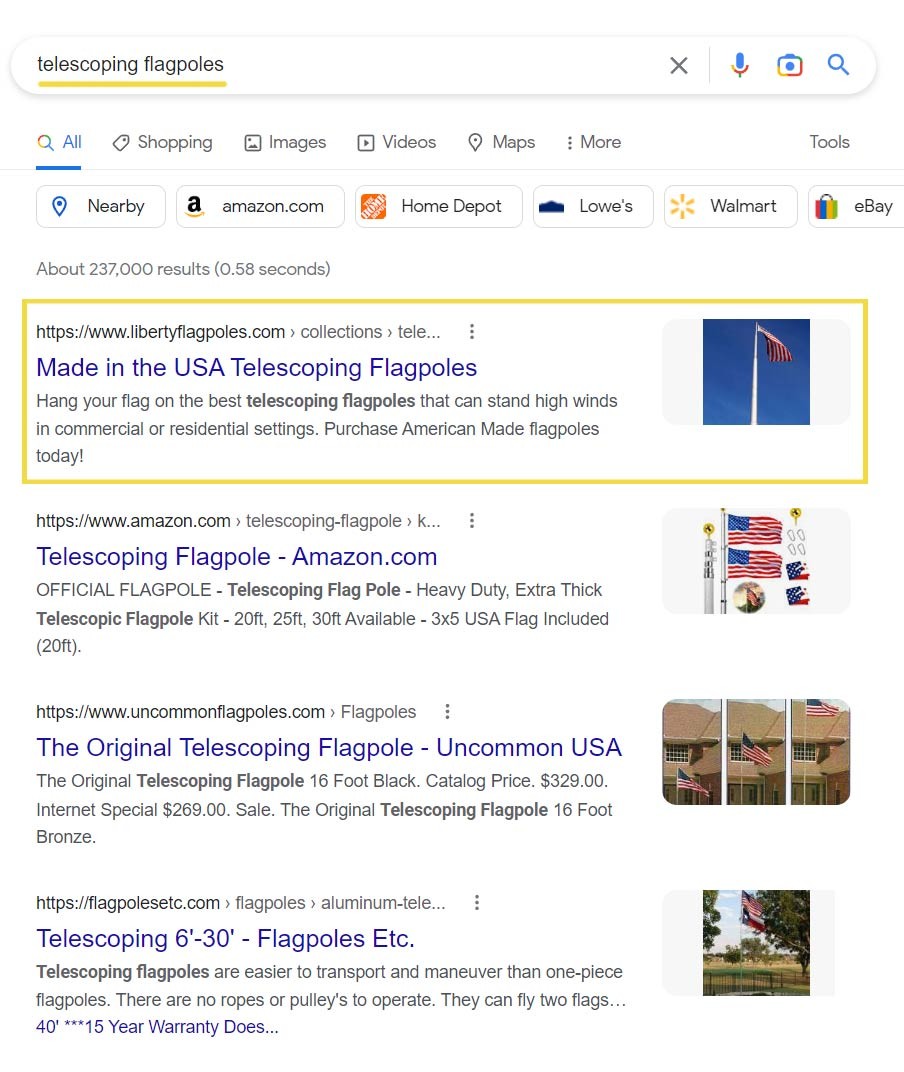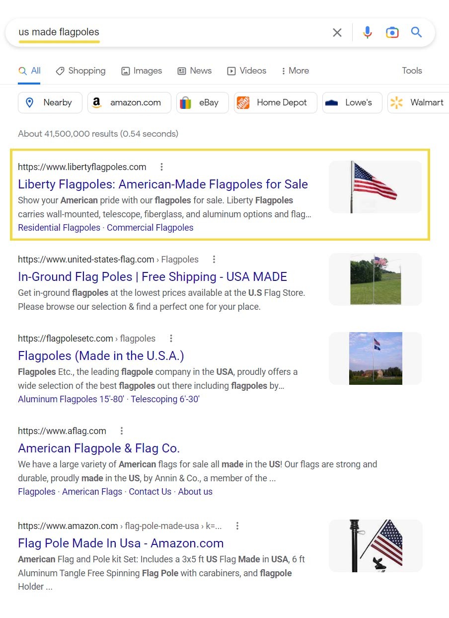 From major online retailers like Amazon to large home improvement stores like Home Depot, there are hundreds of retailers selling flags and flagpoles with massive online presences. The inherent challenge was to take a small business website and get it to outrank high-authority sites from major national retailers, many of which spend millions on SEO