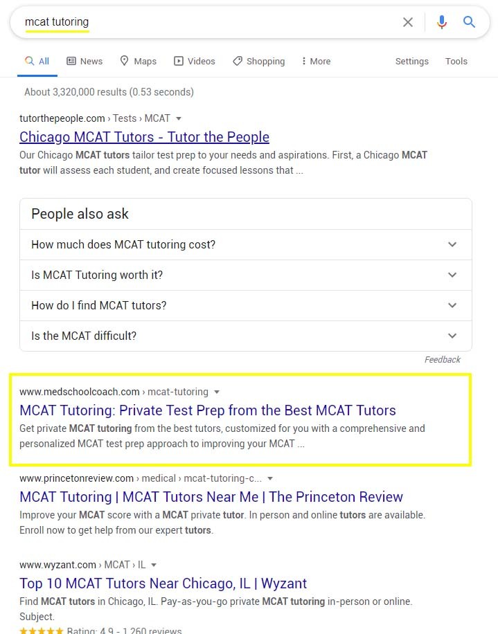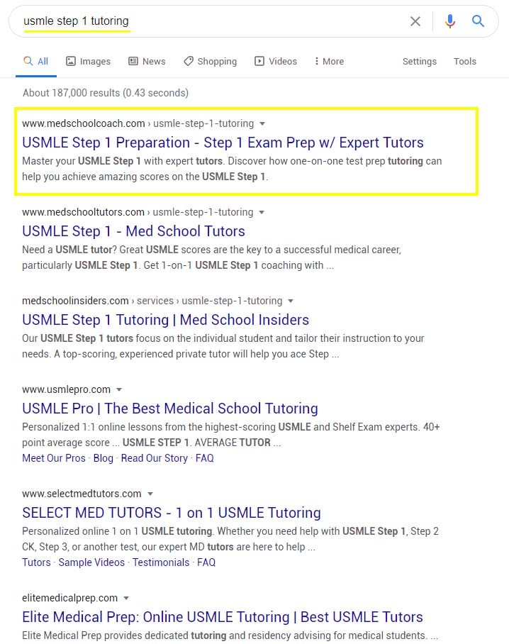 Medical tutoring is a high-stakes and high-profit industry. With hundreds of thousands of aspiring doctors waiting to become physicians, the race to provide them qualified tutoring services is intense. Competitors had already spent tens of thousands of marketing dollars to improve their online visibility, so we had to create a comprehensive SEO strategy to overtake them.