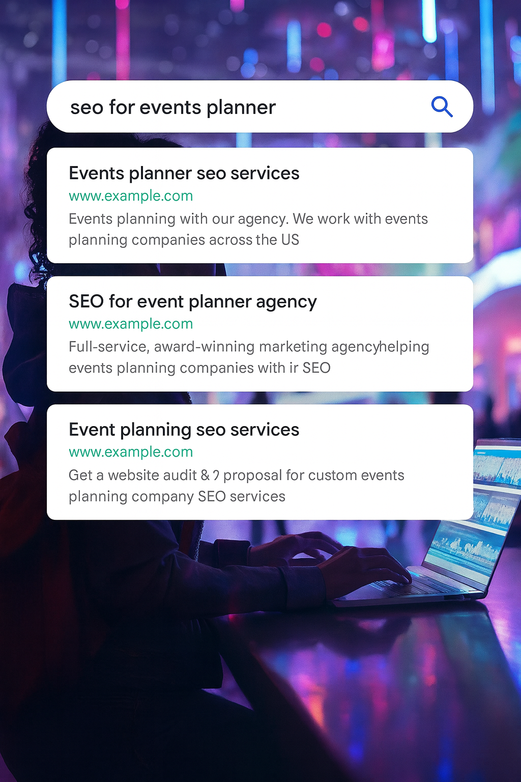 We speak fluent SEO, and we know your industry. We’ve helped event professionals across the country turn underperforming websites into high-performing lead machines. No fluff. No guesswork. Just serious search power that delivers.